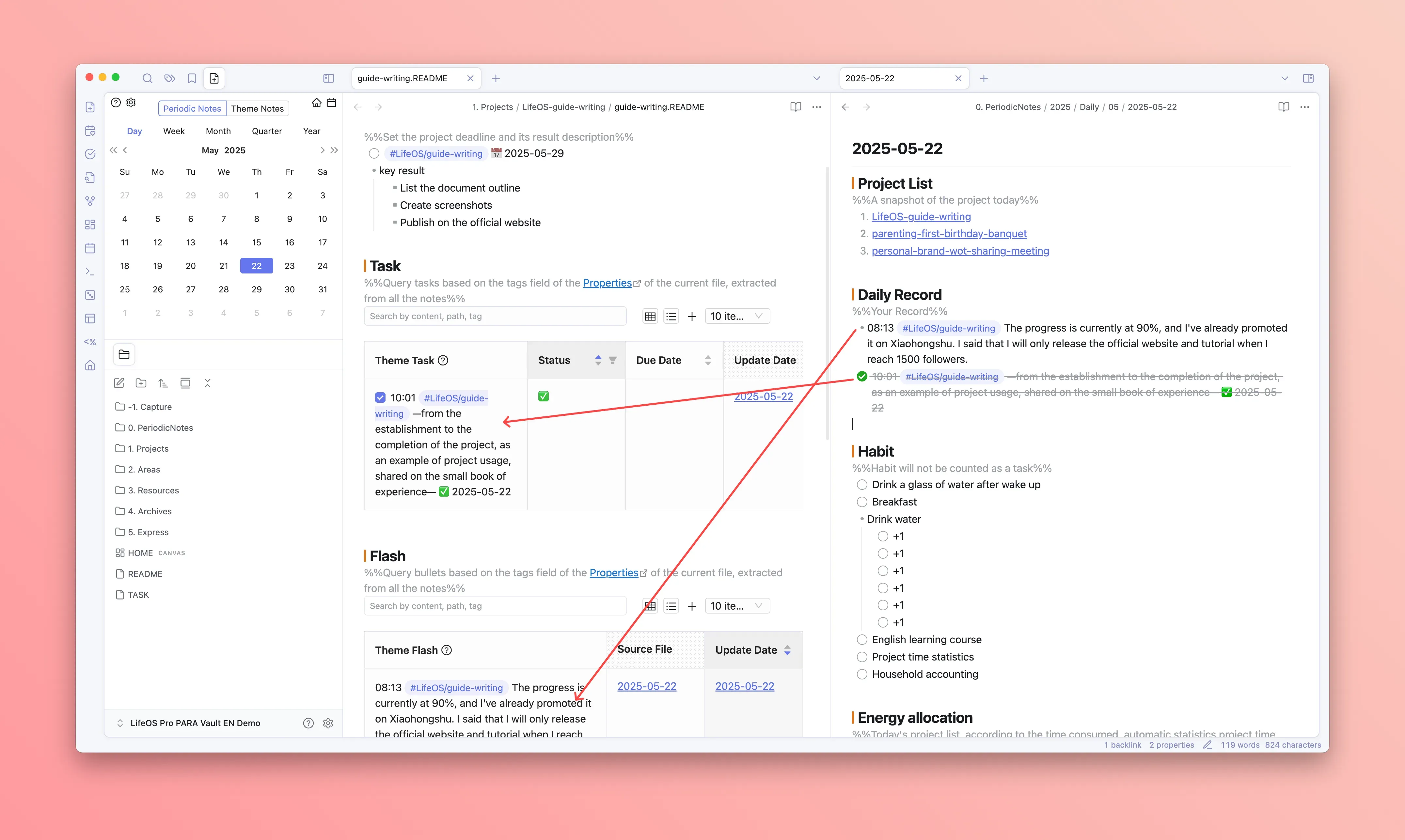 How to use Obsidian for project management? Here, I'll use the "Writing LifeOS Tutorial" project as an example.