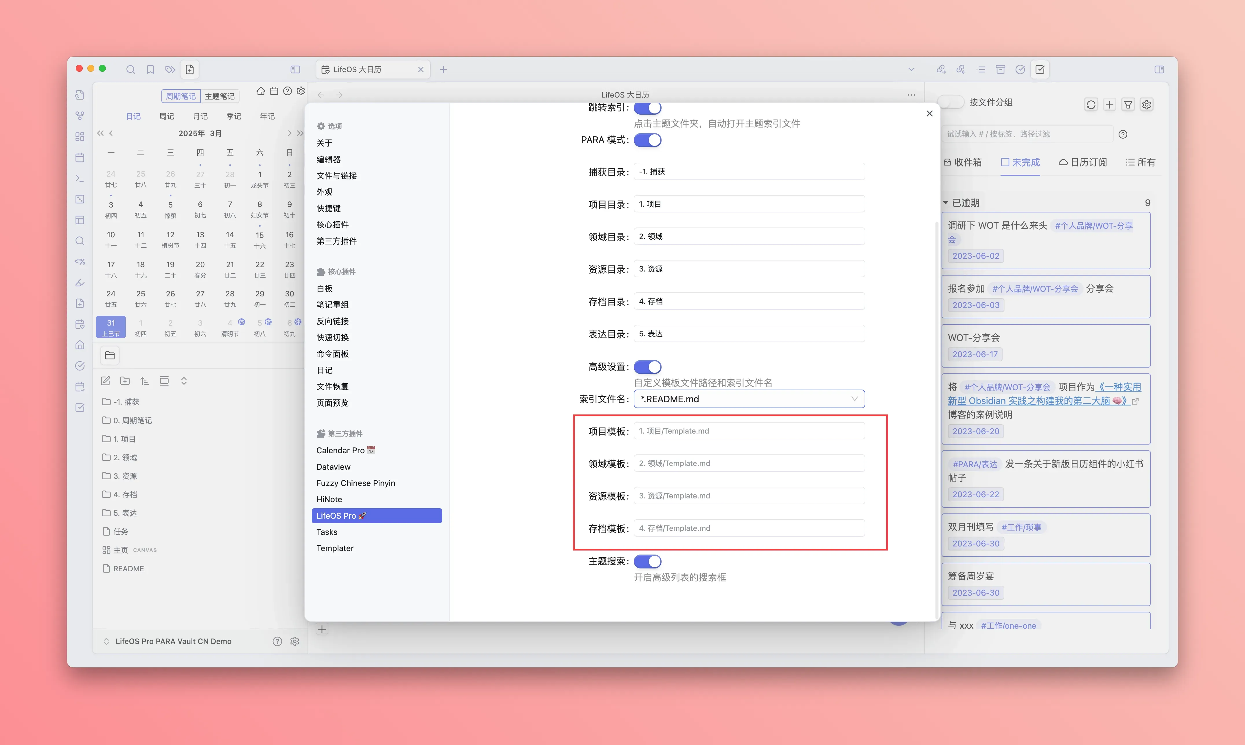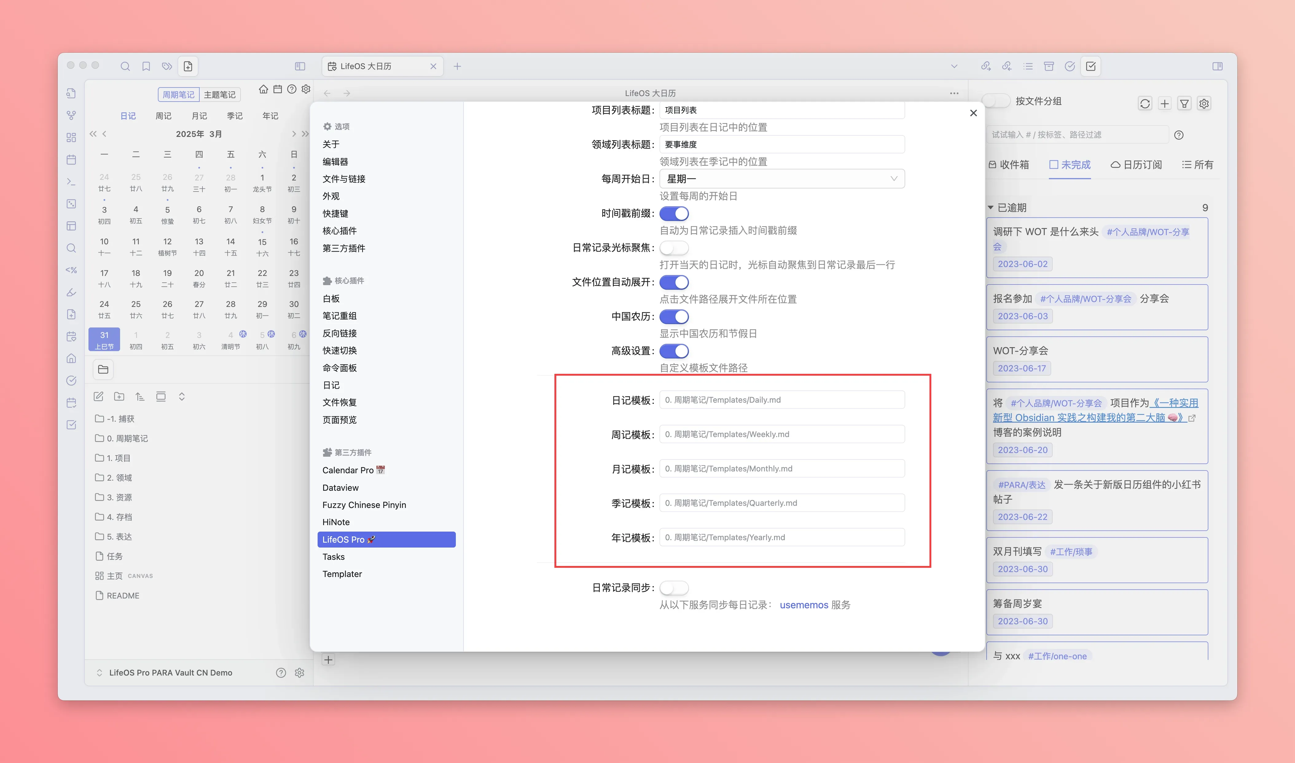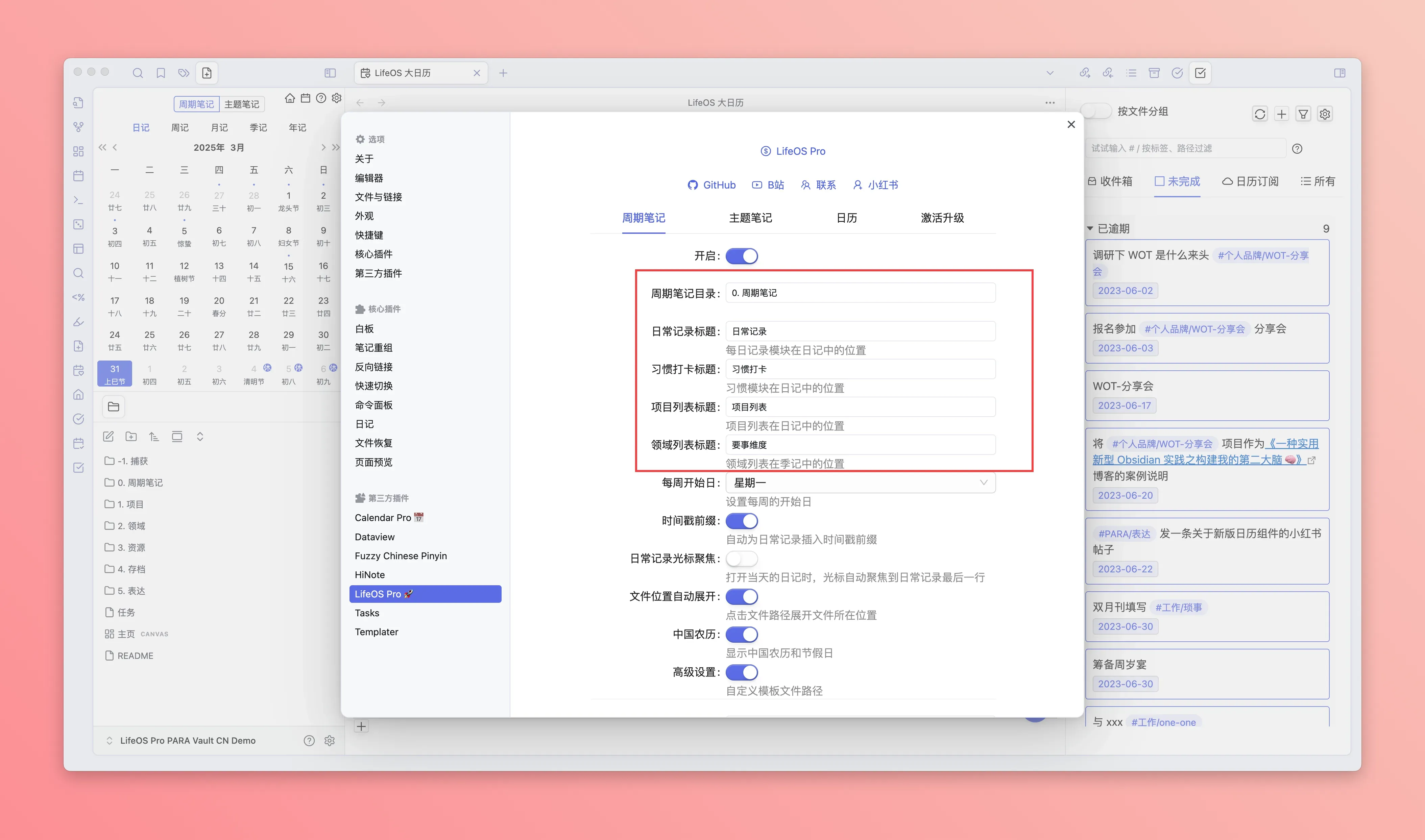 参考下图,配置你的周期笔记所在目录、以及各个模块的标题