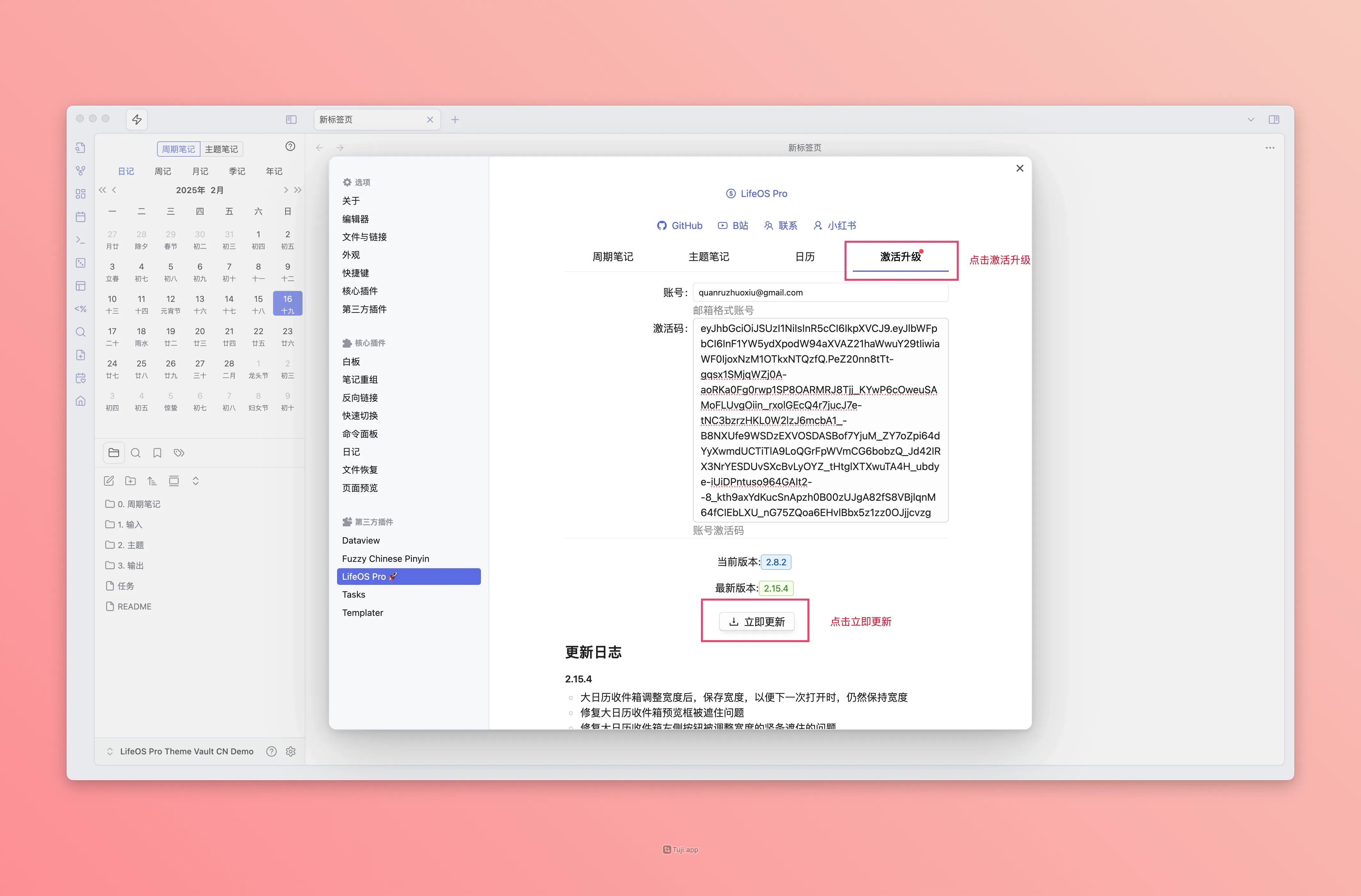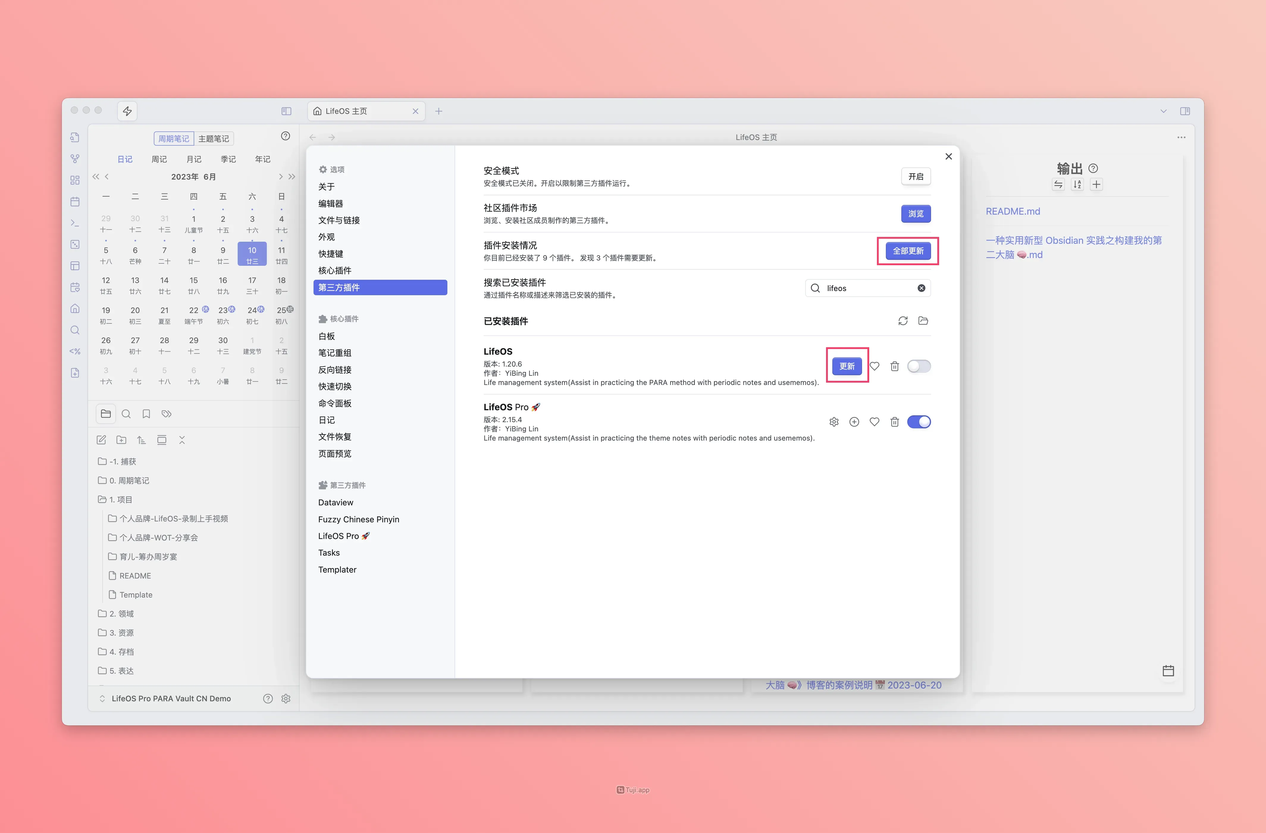 专业版的插件需要通过 LifeOS 插件内的更新按钮完成: